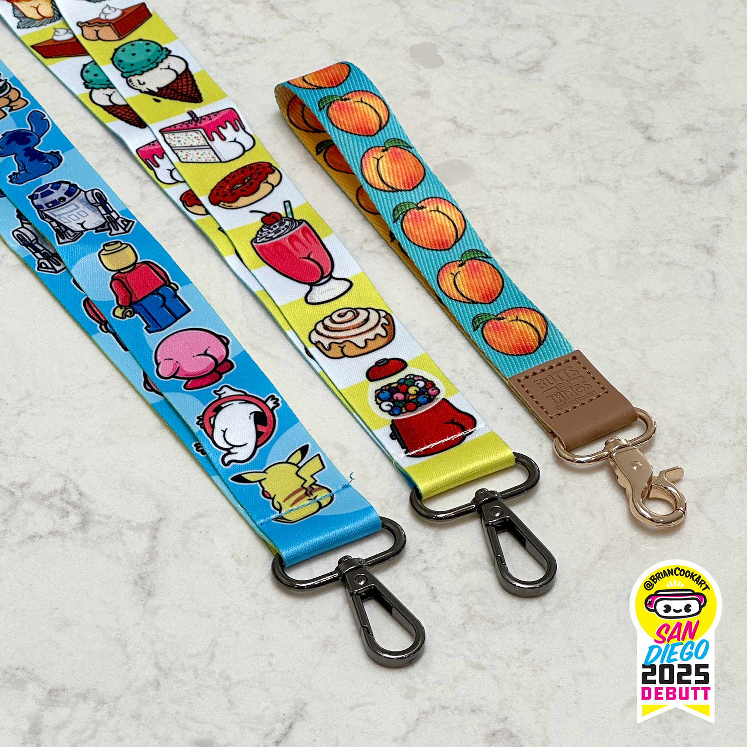 Wear your butts with pride. Brian has two new lanyards for Comic-Con this year, as well as a special keychain lanyard.