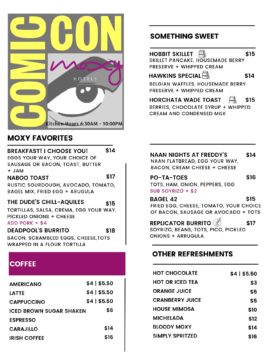 Not only is The Moxy hotel a wonderful place to stay (I’ve stayed previously!), it is also a nice spot to grab a drink or bite to eat. On top of the themed menus they have as seen below, they will also be hosting trivia night on July 24, costume contest with a DJ spinning your favorites on July 25, and a karaoke night on July 26.