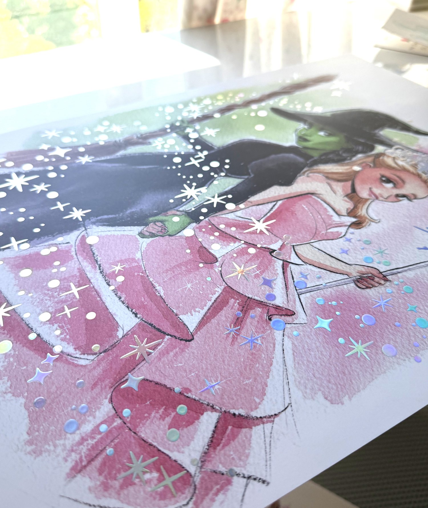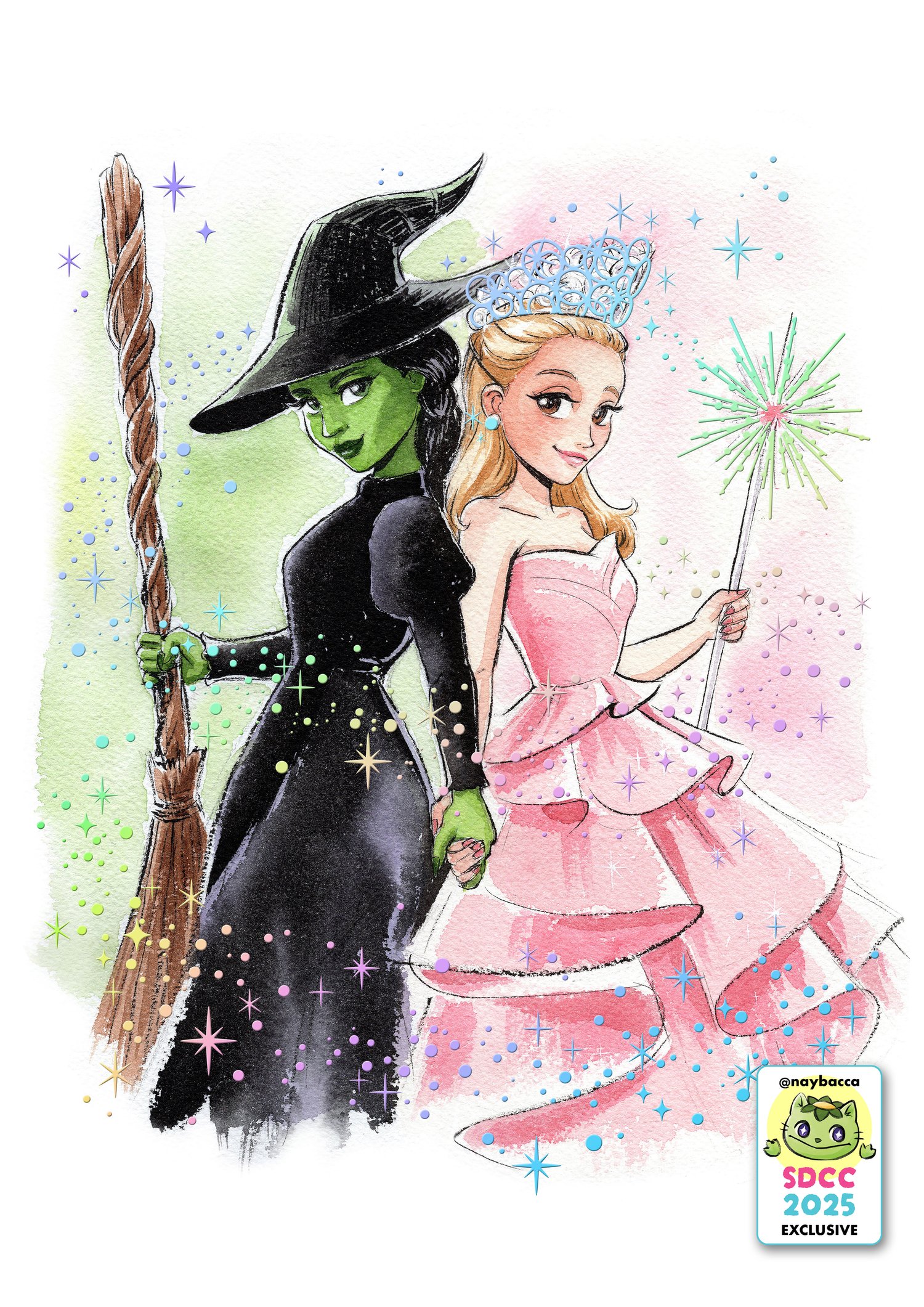 Something Wicked this way comes. Naoko’s latest San Diego Comic-Con exclusive is sure to cast a spell over Wicked fans. This print sees Elphaba and Galinda in Naoko’s signature dreamy watercolor style, hand-in-hand and glittering with magic (and a rainbow holographic foil). It’s limited to just 200 copies, and printed on A3 matte art stock. You can pre-order it now for in-booth pick-up at Booth #5550 for $50 — because it will change you, for good.