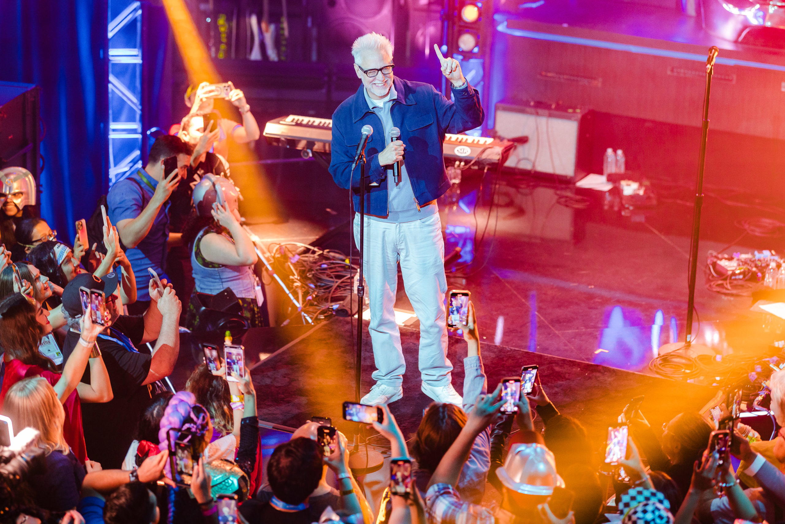 Between sets, fans could grab a drink at Harcourt’s KO Corner Bar (open bar!) or dive into the merch at Vigilante’s Hero S*** Shop, which featured shirts and exclusives from Warner Bros. Discovery Global Consumer Products, DC Shop, McFarlane Toys, Sideshow, and Upper Deck. While the merch was for sale rather than free, the lines were certainly shorter than across the Gaslamp at the Convention Center — making it an easy way to score a souvenir from the experience without losing half your day.