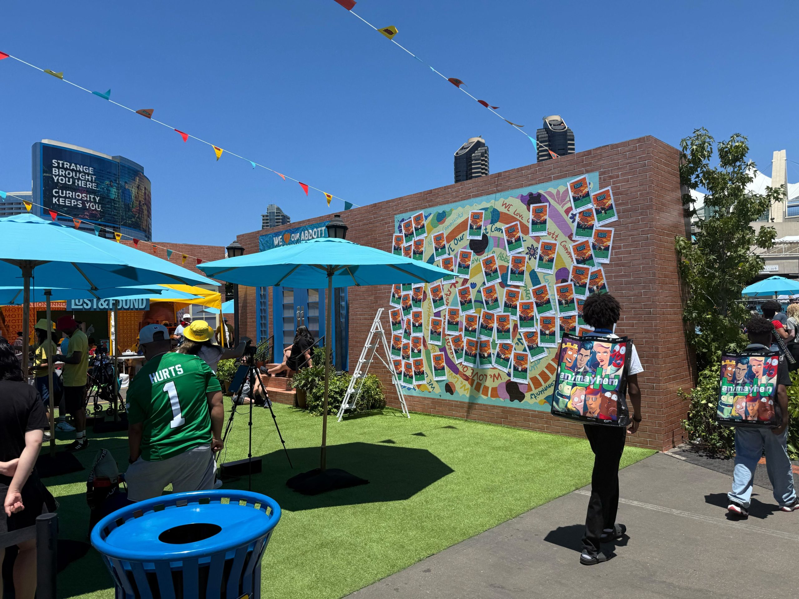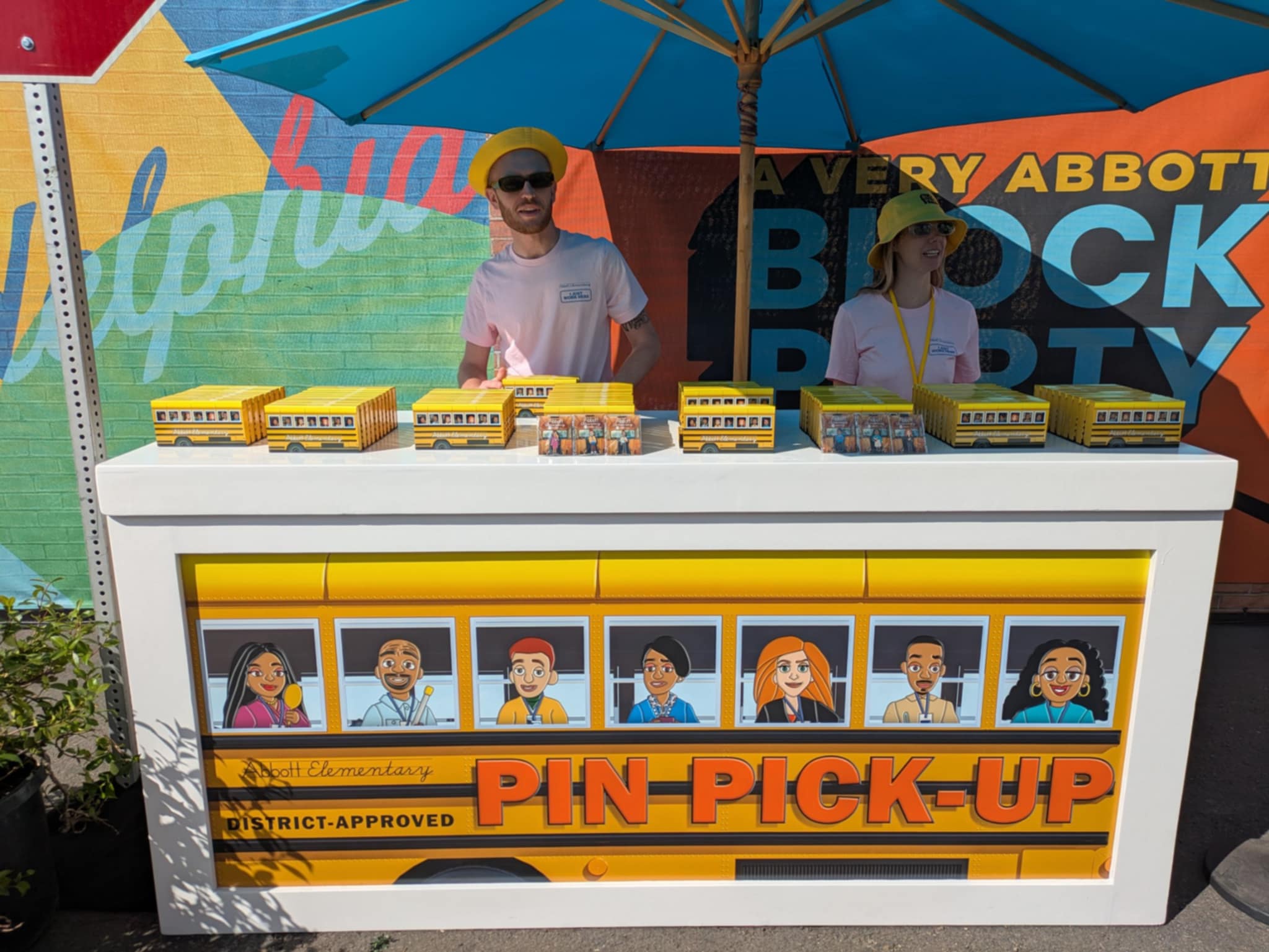 Designed to be a celebration of the community-like atmosphere that pervades the show, the Abbott Elementary Block Party invited revelers to ride a ferris wheel, enjoy some refreshing Philly “water ice,” have an AI – generated caricature printed into a poster, select some swag (hats or crossbody/fanny packs) personalized and also pick up some character pins.