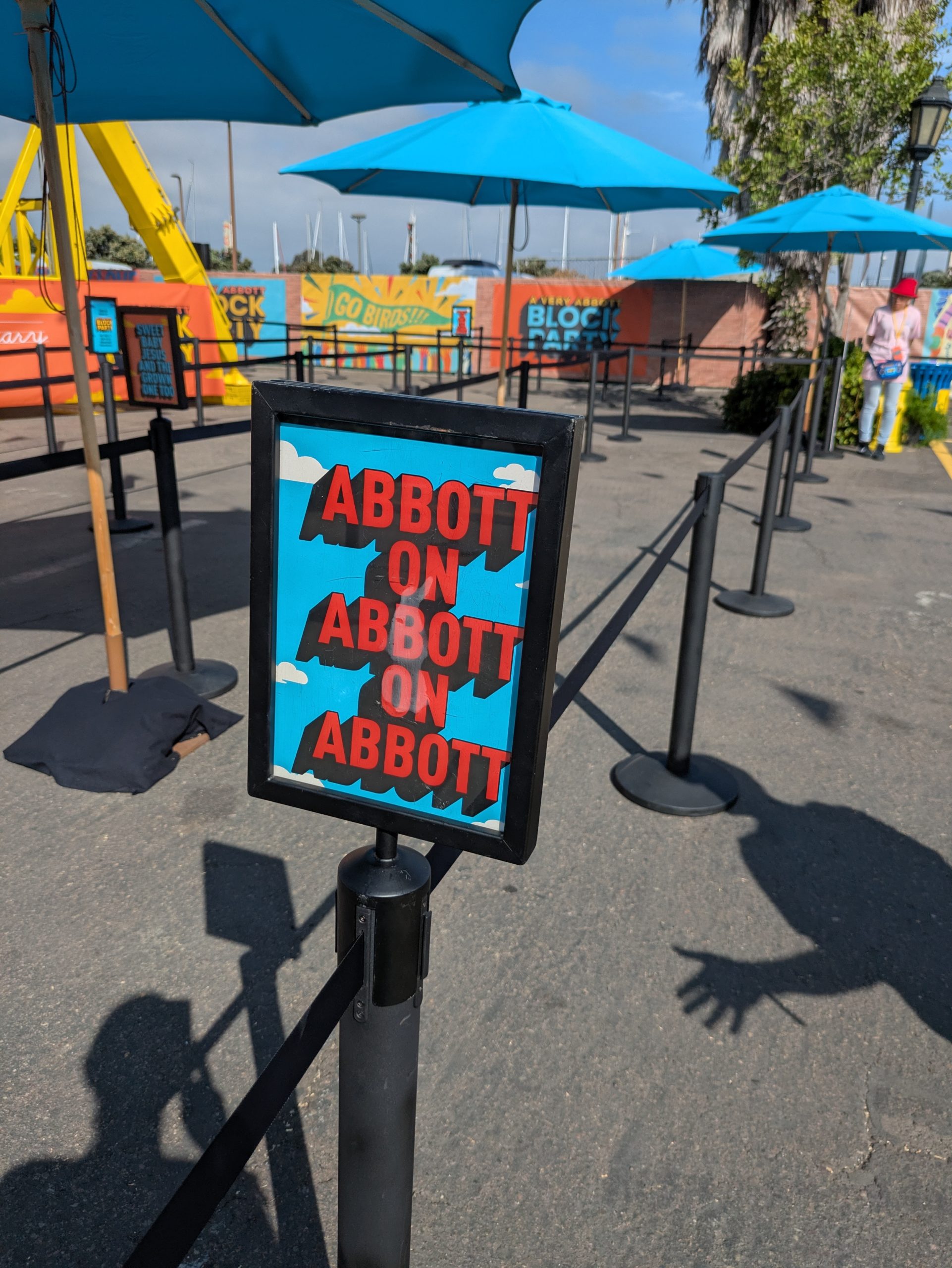 Once again, the things that the Abbott Block Party got right were the vibes. Every corner of the block was decorated, even street markings and crosswalks which would be appreciated from the heights of the centrally placed ferris wheel. The clever queue signs, the character-appropriate artwork which included the photo-op perfect statues at the entrance which were recreated in enamel pins for attendees to collect.