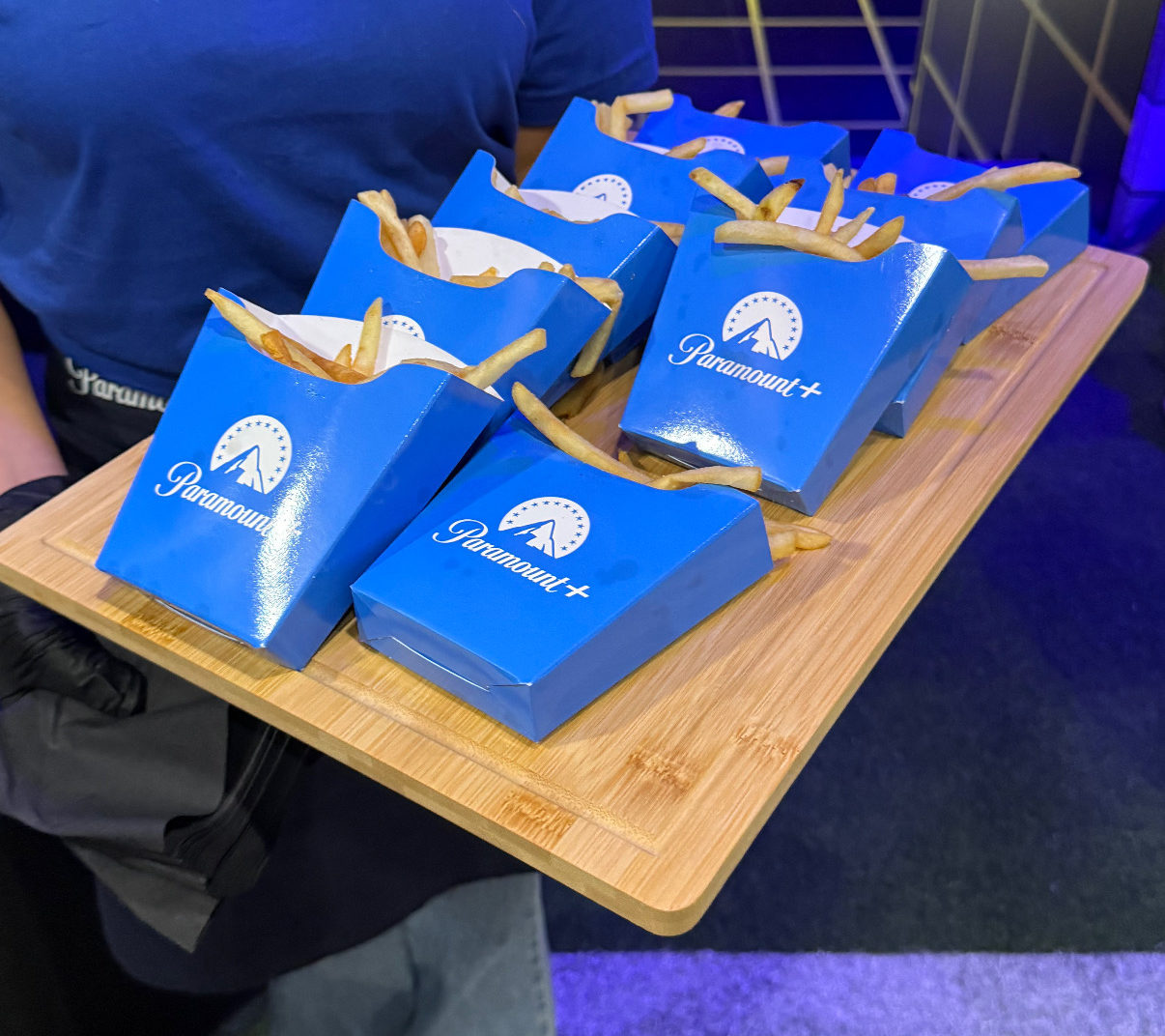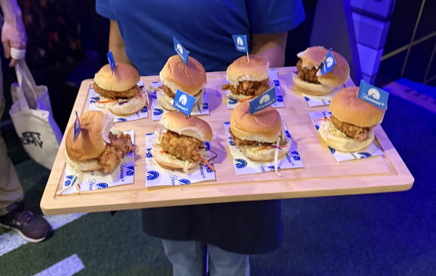 Ticketed food from years past was phased out for passed chicken sliders and fries, as well as popcorn from the Pluto TV area (where the slushie machines were). None of the items will win any Michelin stars, but free is free, and as con attendees we love free food!