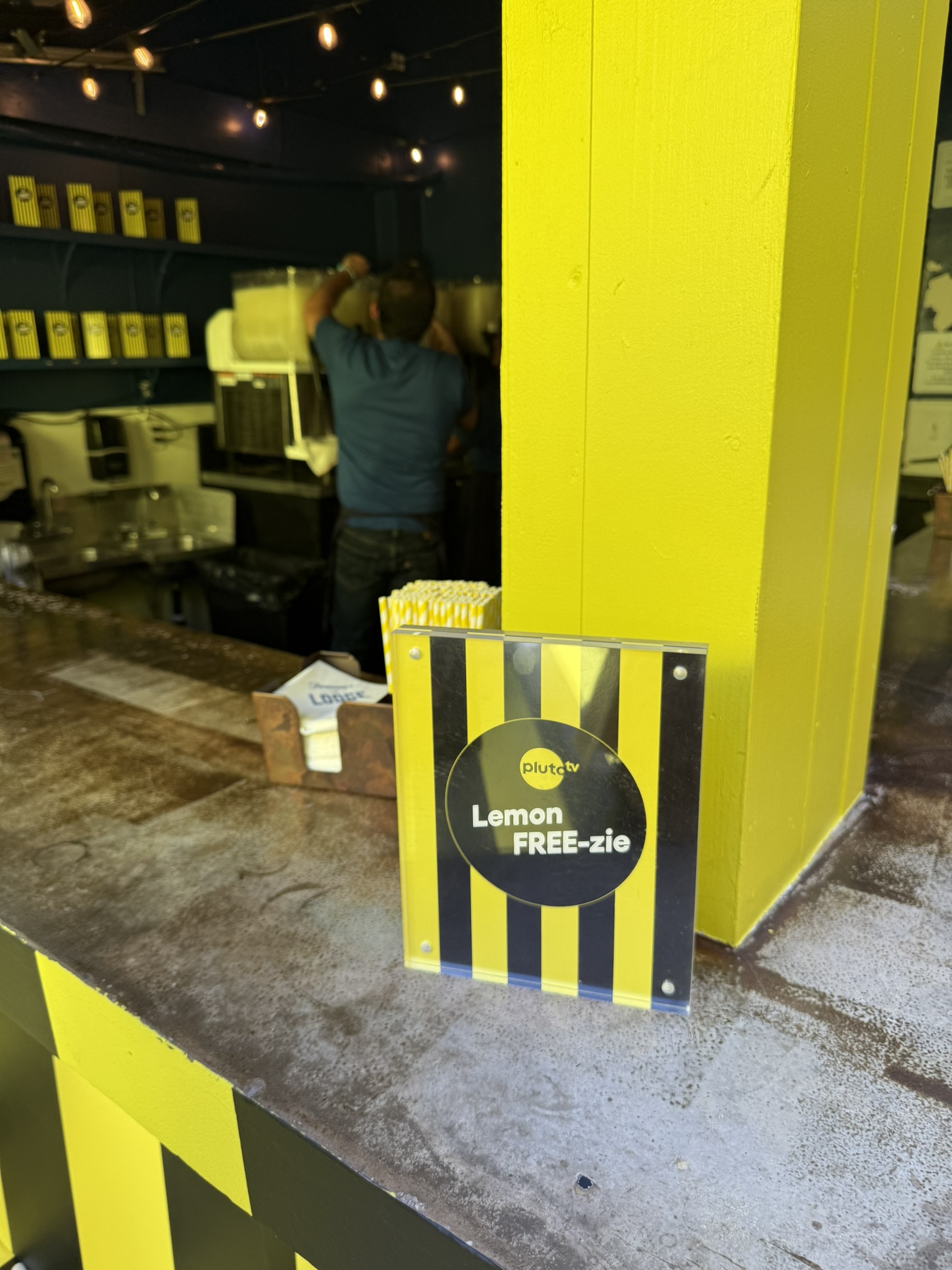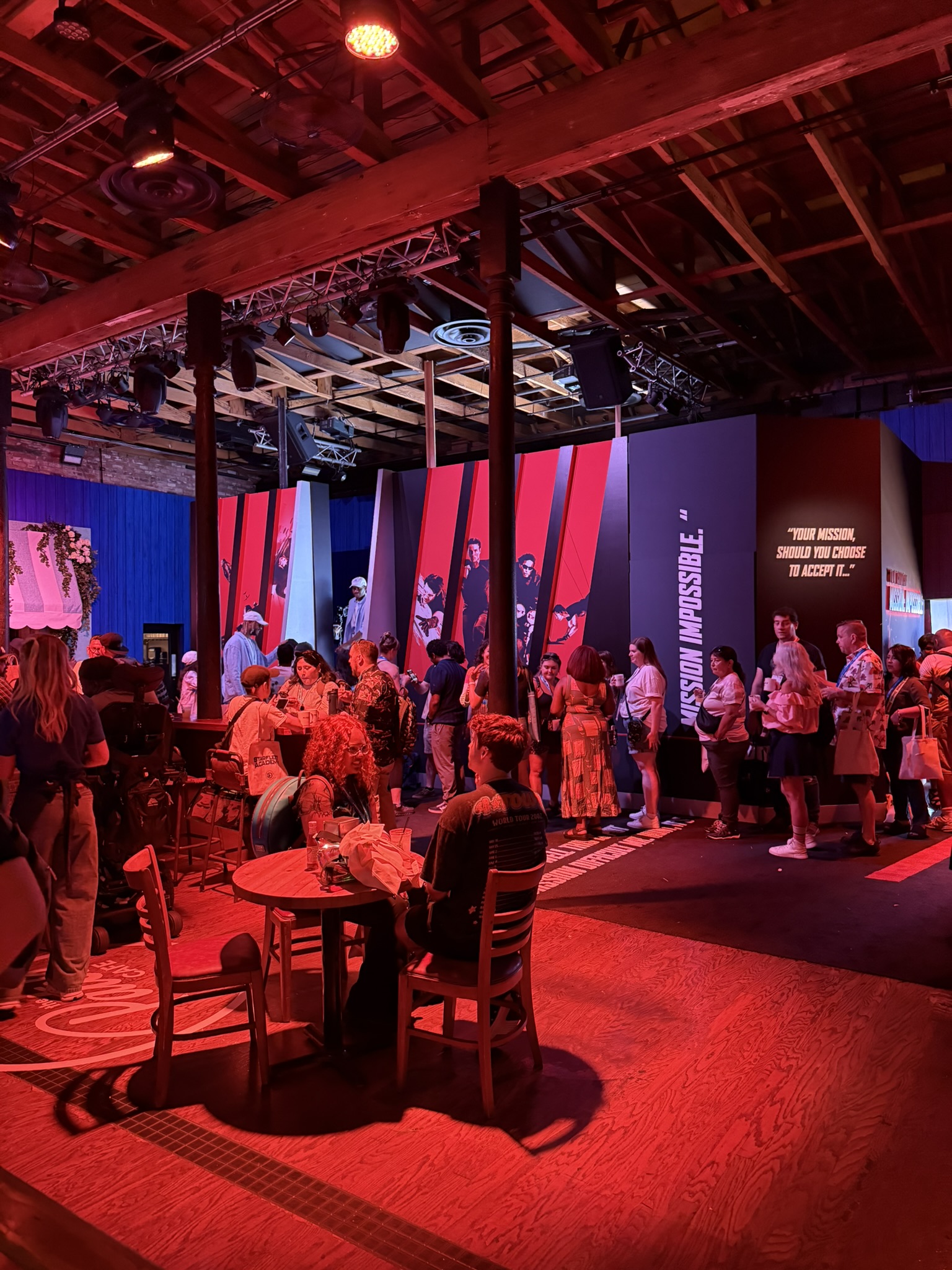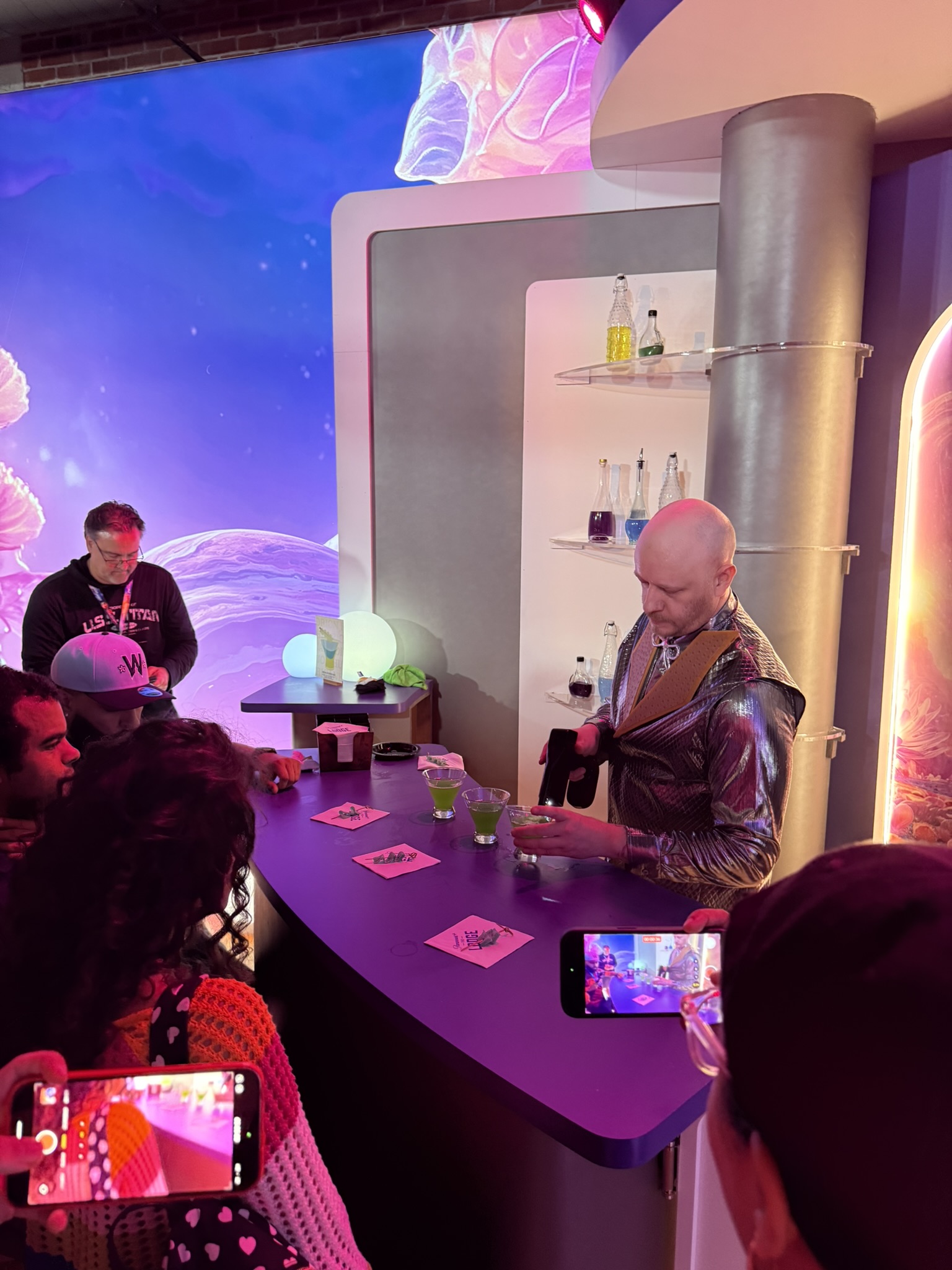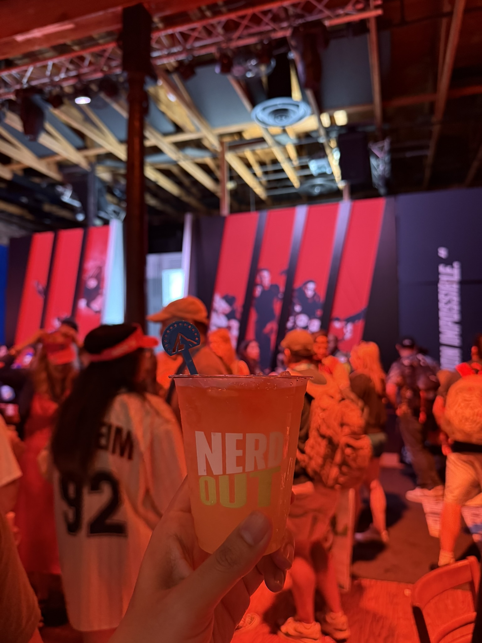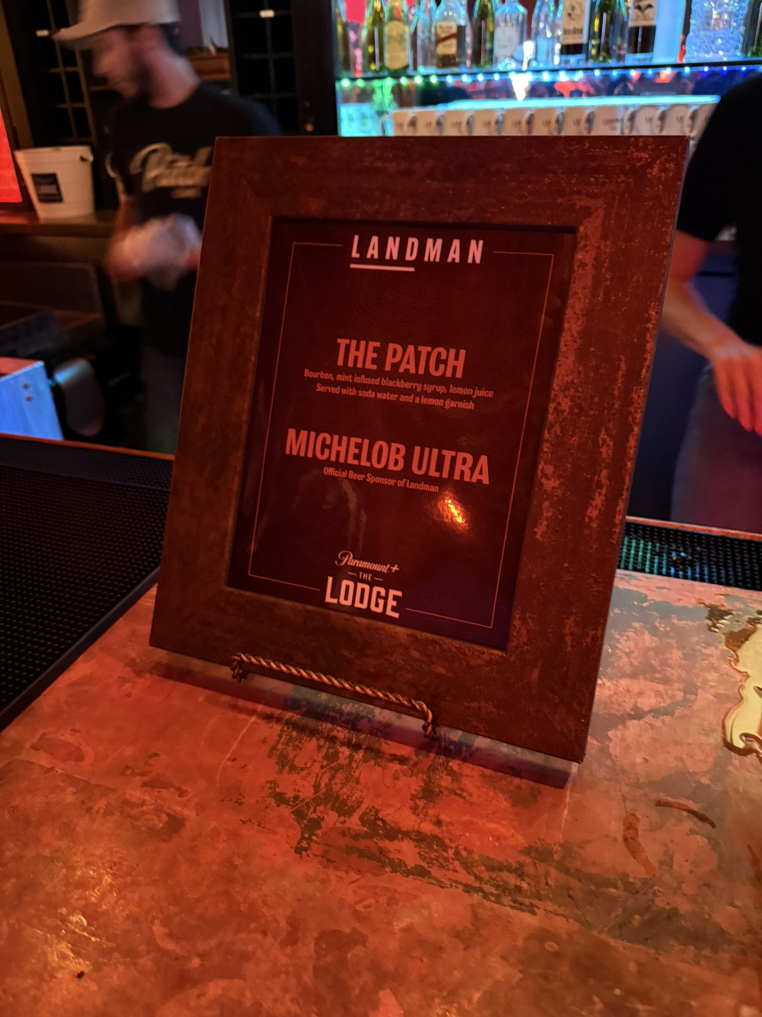 As always, each Lodge 21+ admission came with two complimentary drinks (insert Michael Fassbender “perfection” meme here). The main drink at the Landman-themed bar was served in a take-home mug, so hooray for combining swag and alcohol! A third drink was available via a passcode (“I Want to Nerd Out”) originating from the Paramount+ Nerd Out offsite behind the Omni. For the under-21 and non-alcohol crowd, there was a Lemon Free-zie slushie option.