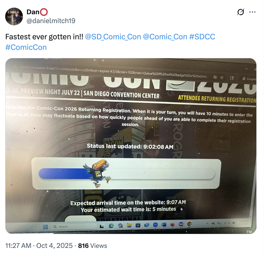 Last year’s sale was plagued by several issues and glitches, so by comparison, how did Returning Registration for SDCC 2026 stack up?