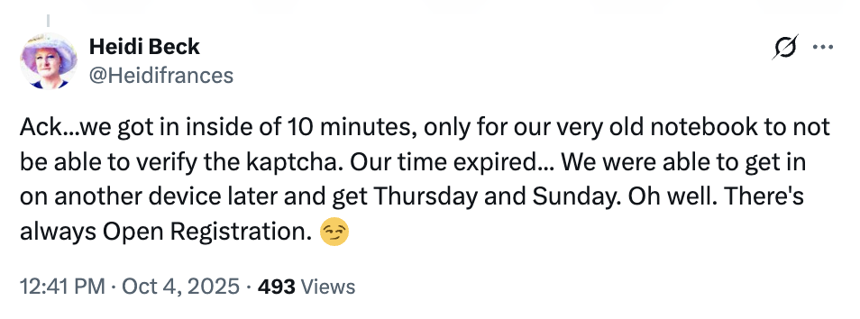 This was the smoothest Returning Registration we’ve had in several years — and we’re hopeful that it bodes well for another smooth Open Registration. Even if you weren’t successful at scoring badges today, you have to admit there were certainly fewer technical issues than the last few years.