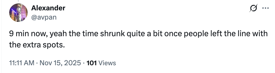 Now here’s where things get interesting. At this point, we noticed you could join the waiting room and get through in only 3 to 4 minutes. What does that mean? If you join the waiting room after 9am, you’re sent to the back of the line — so that means there was both hardly anyone still in line, and that at this point, you could join and still immediately purchase badges. Since the implementation of the online lotteries for badge sales, that has never happened.