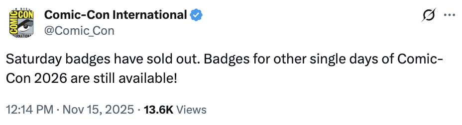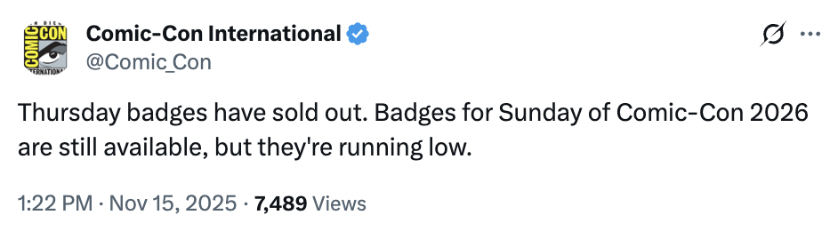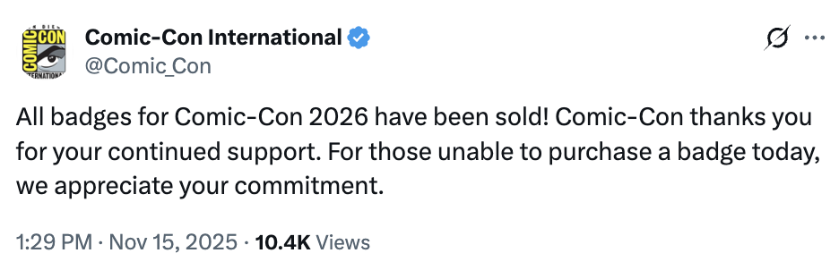 San Diego Comic-Con is the biggest (and in our humble opinions, the best) convention around, the closest thing we’ve found to the feeling of “Christmas in July”. Badges for 2026 were on many people’s wishlists, and the final badge sale — Open Registration — was today, marking the final chance to unwrap a badge for next year’s convention.