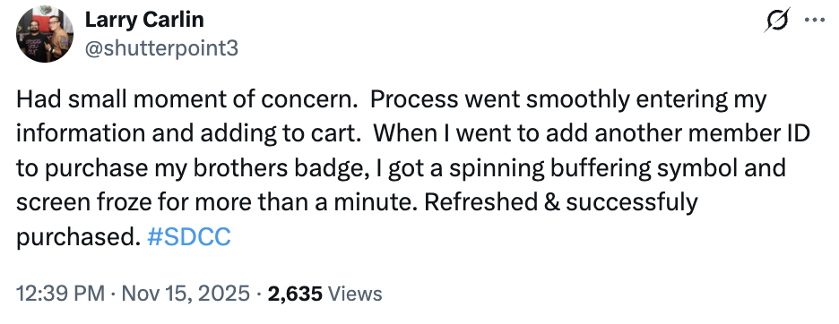 But for the most part, the sale seemed very smooth — and most who we saw with issues were able to get back in and ultimately purchase badges.