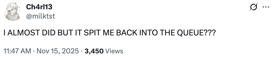 Some reported being kicked back to the Queue once selected. There’s any number of reasons this could have happened — we saw someone who had a VPN on, which Comic-Con had recommended against — but there were surely other reasons, including down to simply the site itself glitching out for whatever reason.